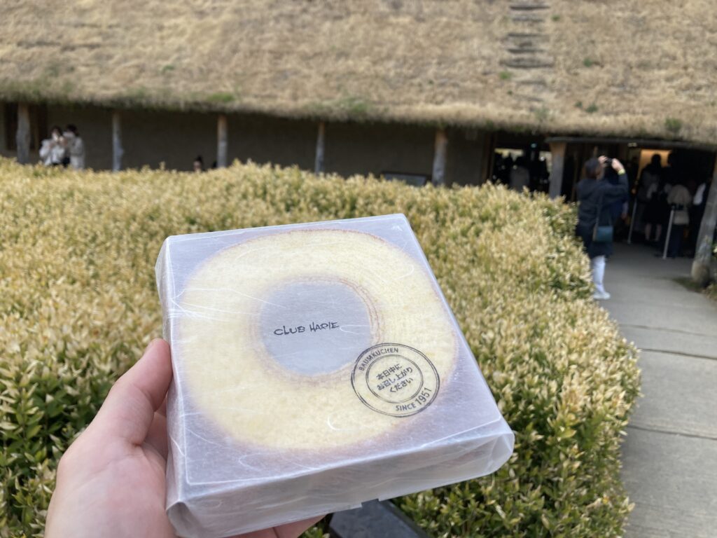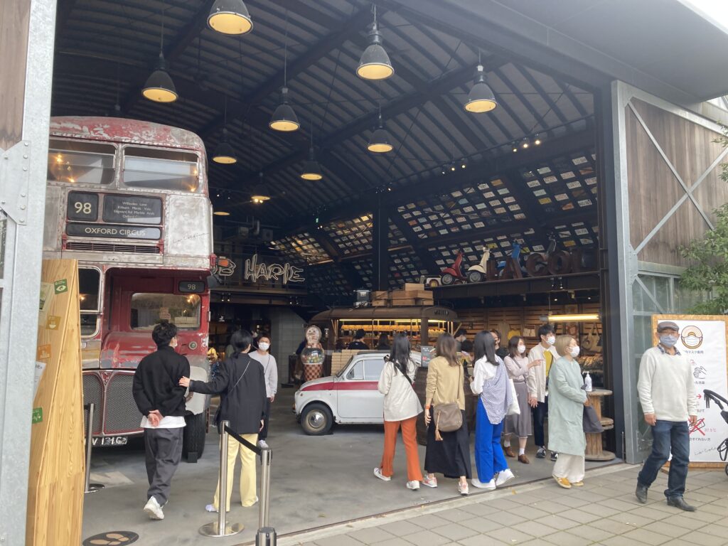 日曜に行ったので混んでいてカフェは45分待ち。出来立てバームクーヘンのお土産は列の割に15分程度で買えました!