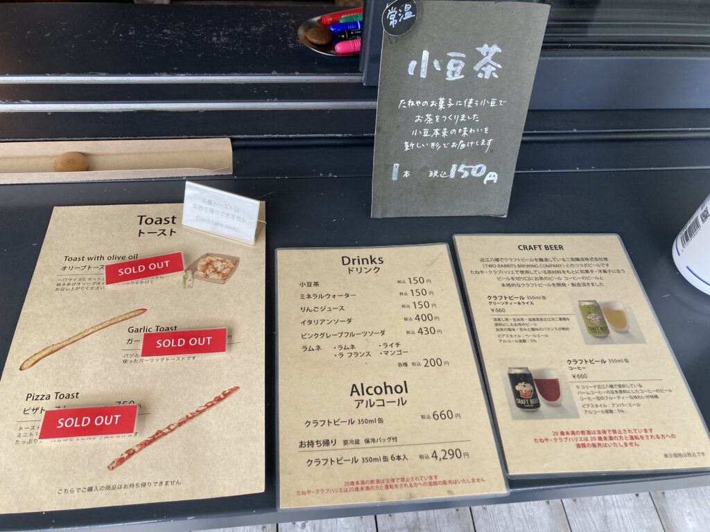 あずき茶150円(お茶に小豆の皮味を少し感じます。普通に美味しい!)