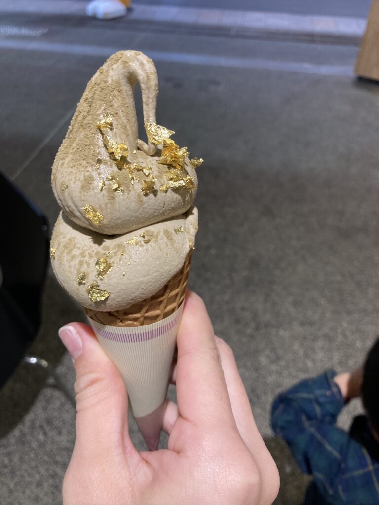 市場を歩きながら帰りの車内で食べるいちごと、ほうじ茶アイスを買いました♪