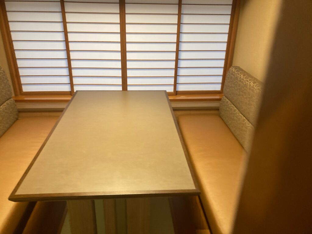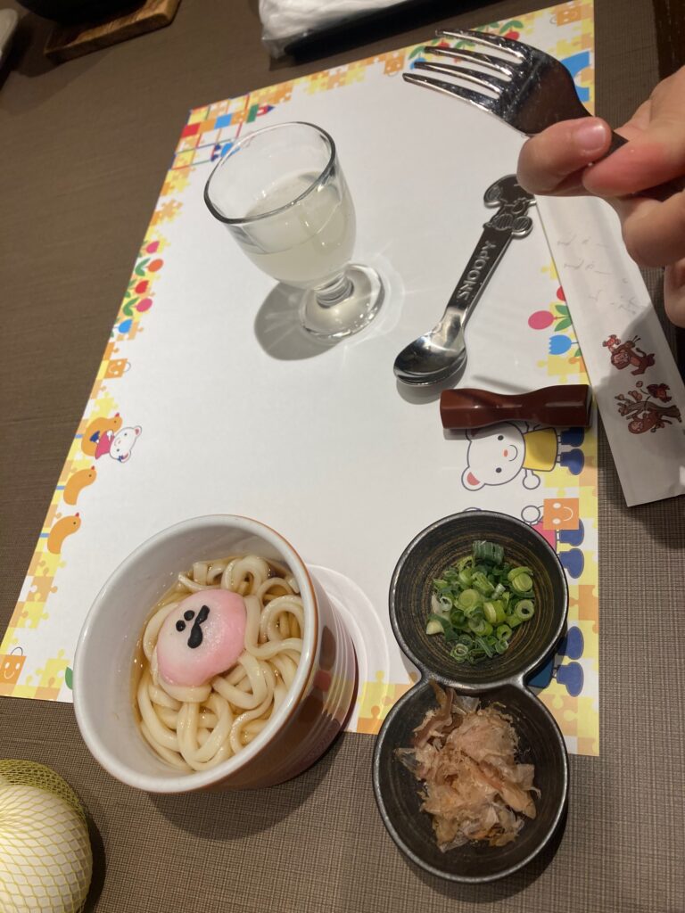 前回は大広間だったのですが、コロナ禍を配慮して下さったのか、子連れだったからなのか個室で頂くことができました。(前回は食事会場にベビーベッドをご用意してくださいました。次男はそこでずっと寝ていた記憶があります)個室なので子どもたちが多少歩き回っても気にならず蟹を堪能することができ本当に感謝です♪子どもたちの食事は長男だけ子どもの食事をお願いしました。3歳なので次男と半分ずつでも大丈夫かな?と思っていたのですが予想的中!長男は一丁前に蟹を楽しんでいました♪