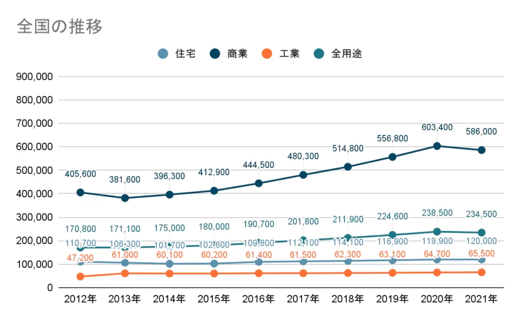 一番大きな影響をもたらす土地価格は年々上昇している状況です。
